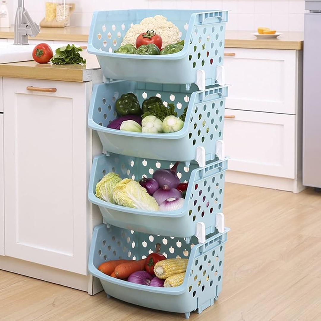 Storage Stacking Bins Stackable Kitchen Basket Racks Household Plastic Multi-Storey Home Organizer (KD073)
